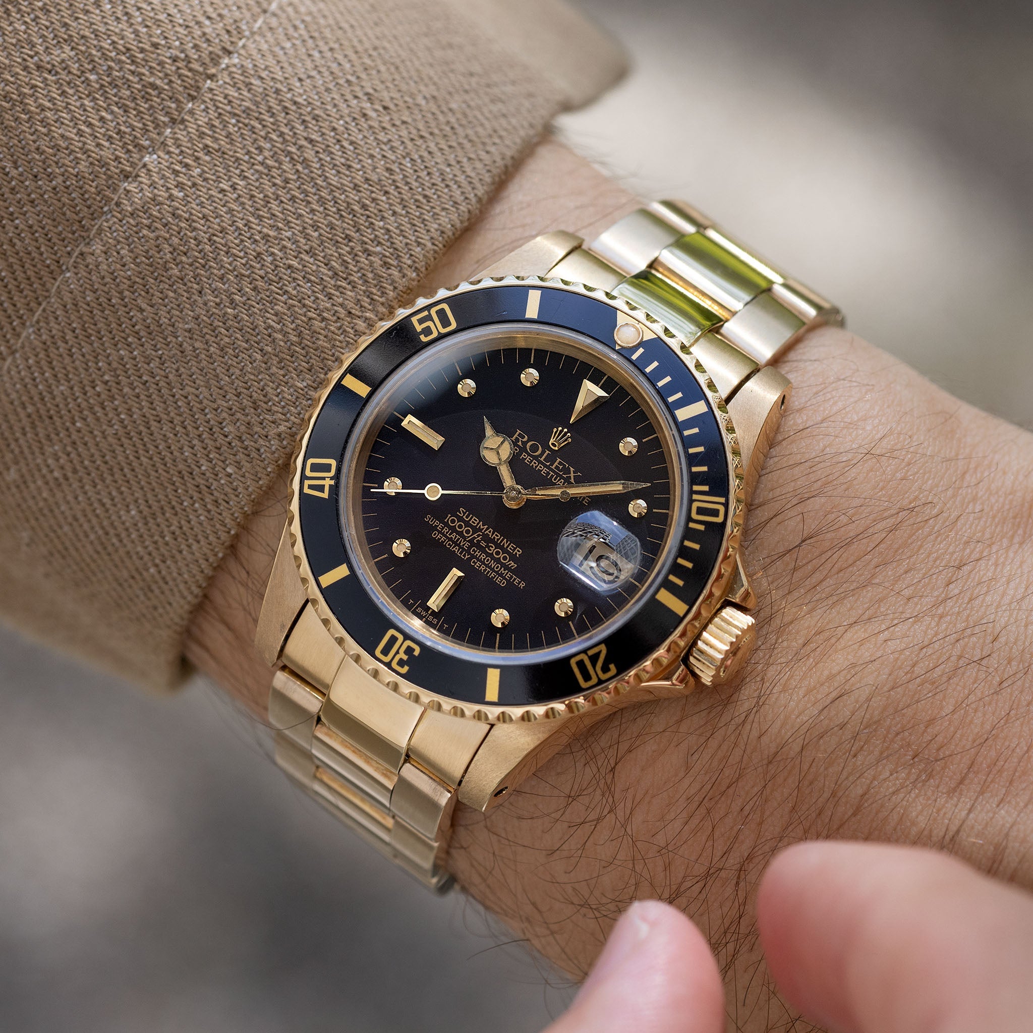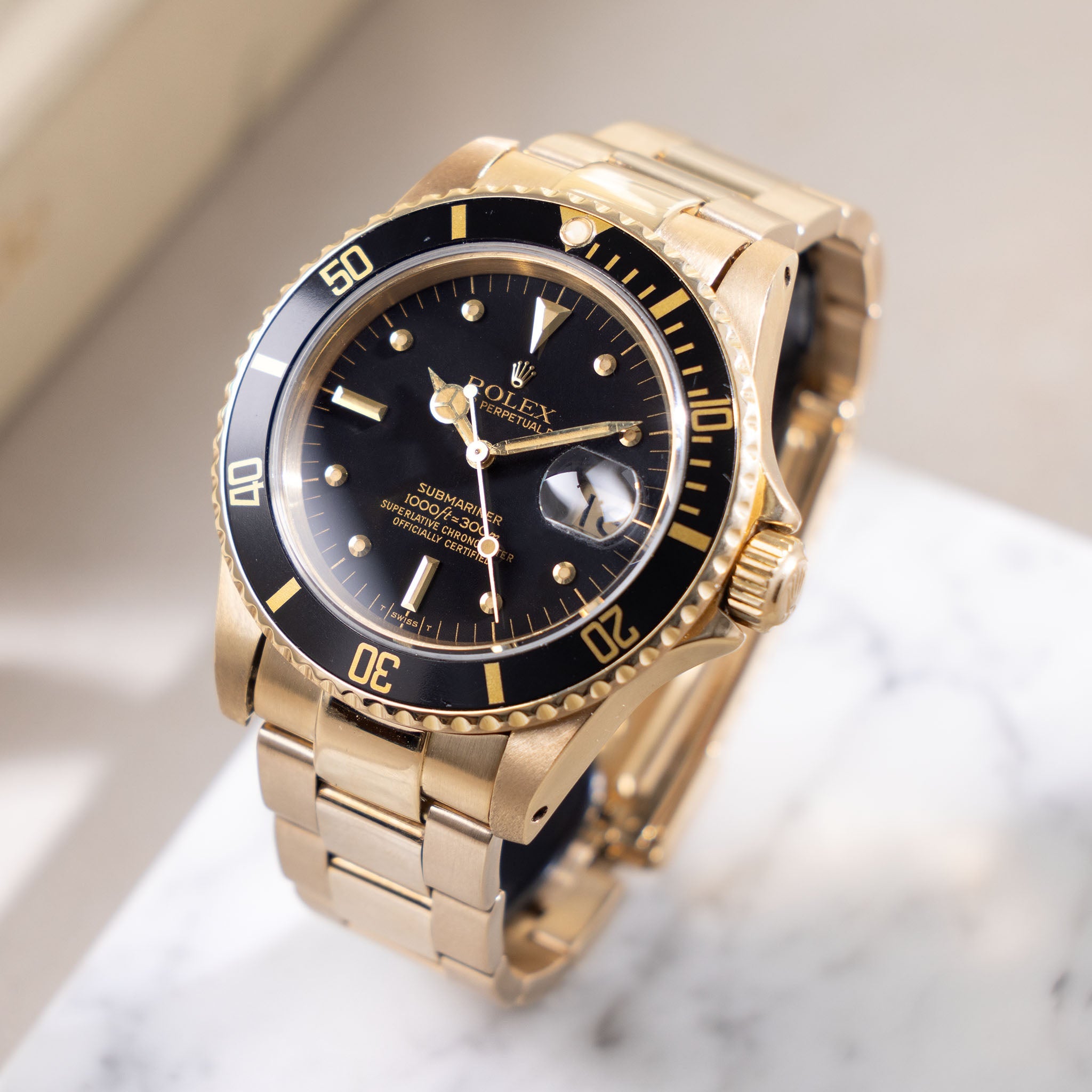 Rolex Submariner Date in 18k gold ref. 16808 with black nipple dial Box and Papers