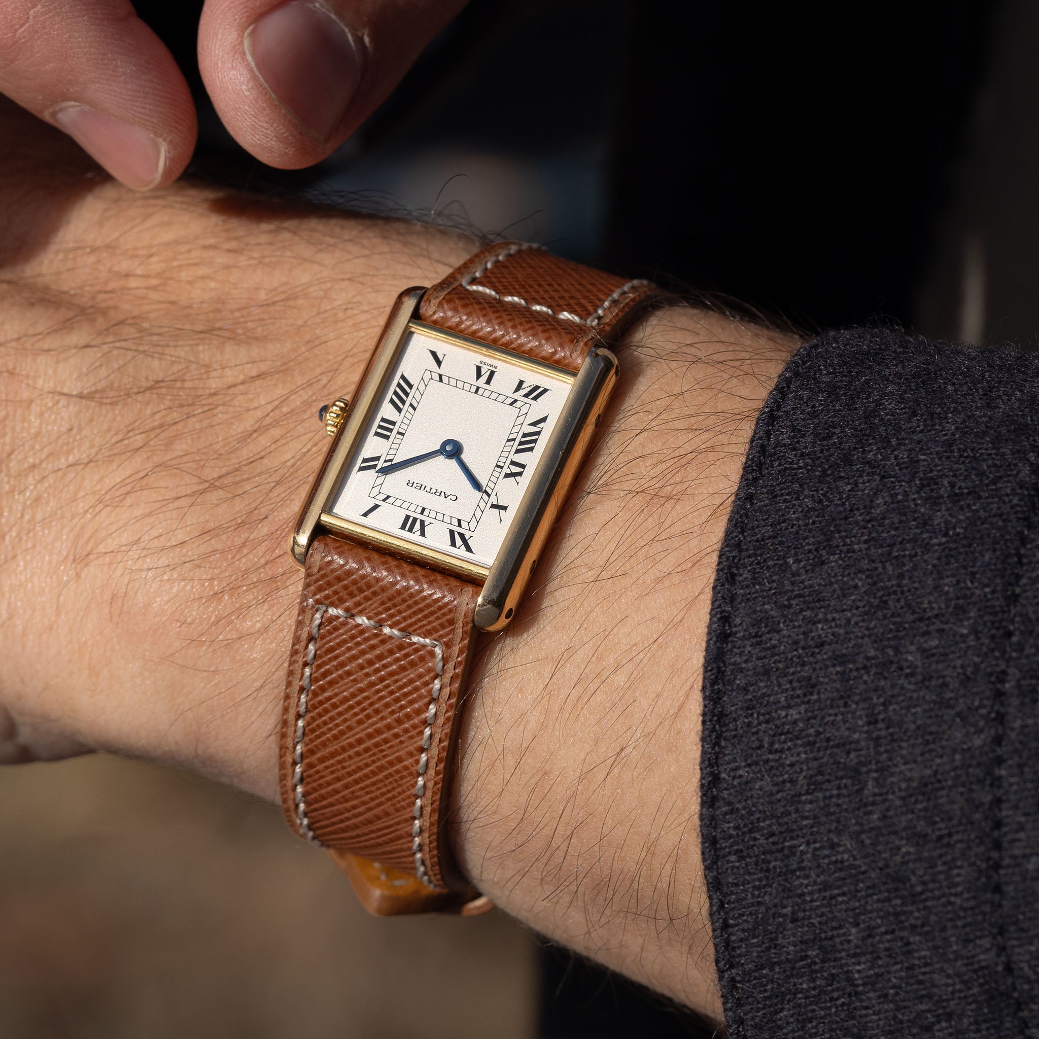 Strap for Cartier 17.5mm - Saffiano Cognac Brown Leather - Boxed Stitch