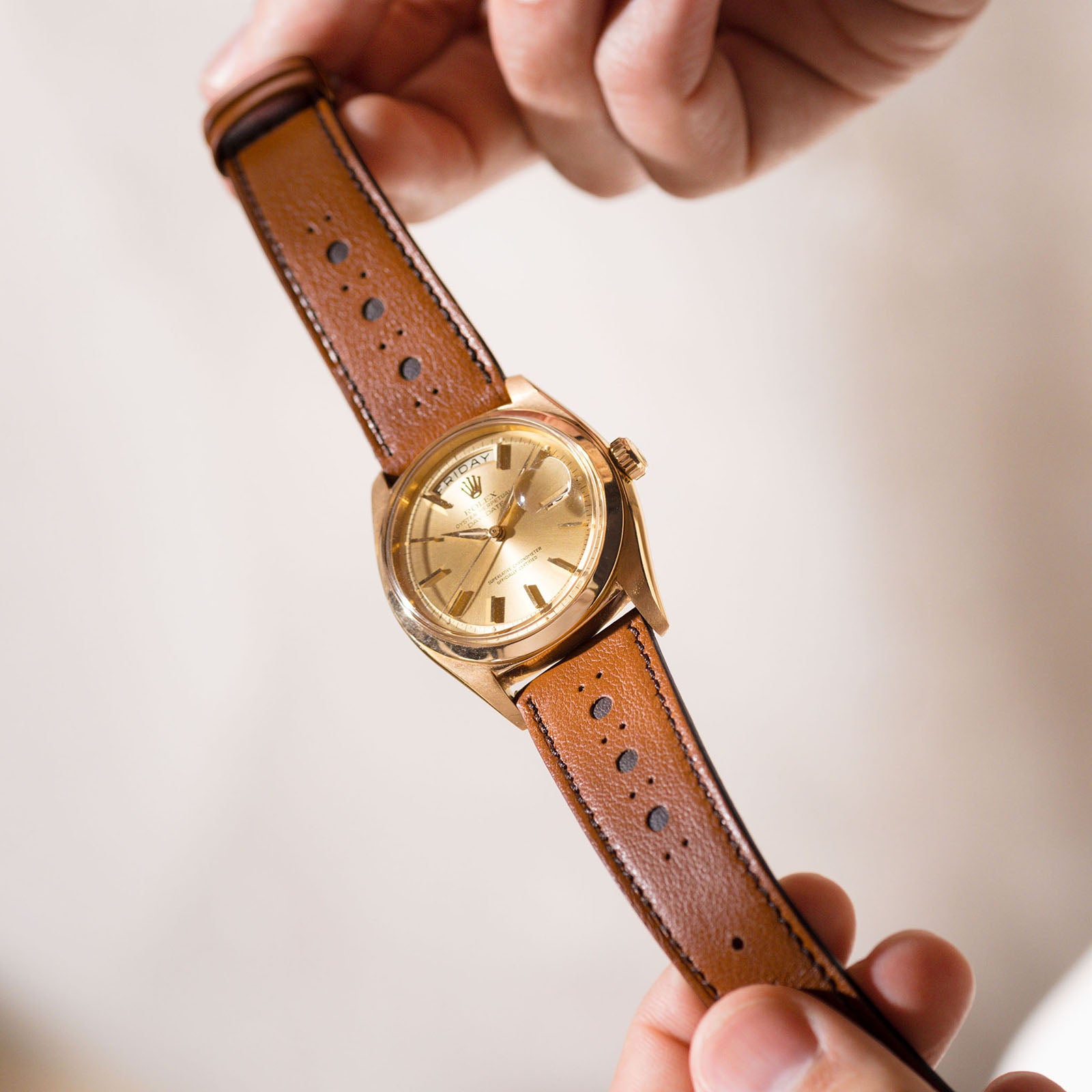 Nos essentiels de montre sont fabriqués à partir des meilleurs matériaux naturels. S'ils sont en cuir, vous pouvez être sûr qu'il n'y a pas de revêtement chimique ni de cire sur le dessus, ce qui les rend très doux et pleins de caractère. Cette qualité naturelle provoque également un vieillissement du matériau au fil du temps. Chaque article développe sa propre patine individuelle, ce que nous aimons particulièrement. Veuillez ne pas traiter le cuir avec de l'huile ou de la cire car cela altère la nature même du produit.