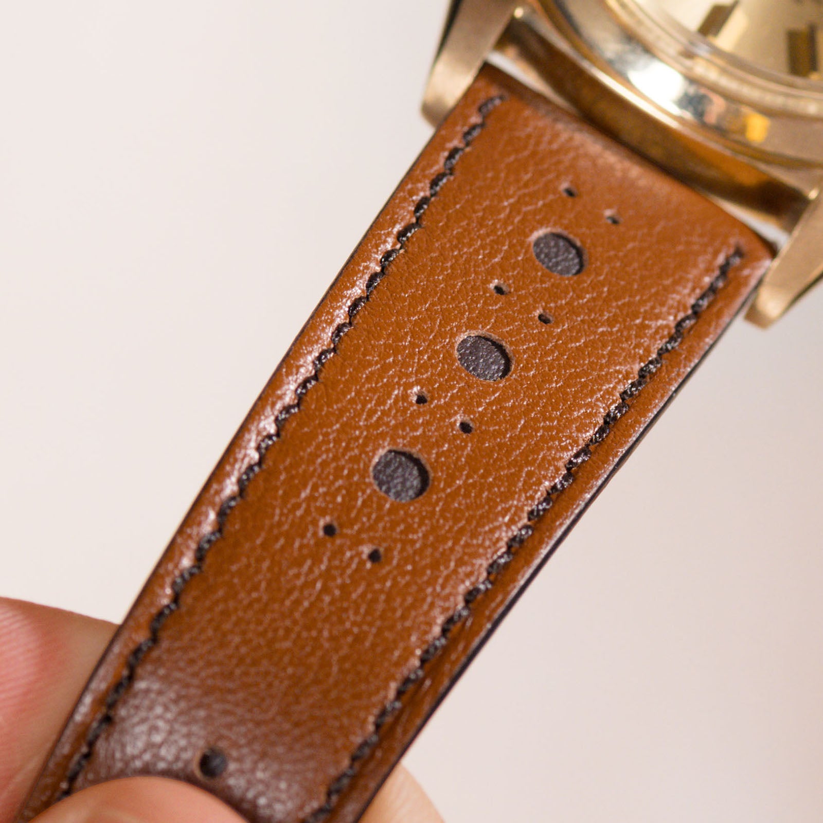 Comme le cuir tanné végétal a tendance à légèrement rétrécir avec le temps, tous nos bracelets de montre en cuir sont délibérément conçus avec une largeur légèrement supérieure pour éviter qu'ils ne paraissent trop petits après quelques utilisations. Lors de la première installation avec votre montre, le bracelet peut sembler un peu serré - mais avec le temps, il va s'étirer et s'adapter parfaitement entre les cornes. Pour Bulang and Sons, c'est un gage de qualité et la preuve de notre approche traditionnelle et naturelle.